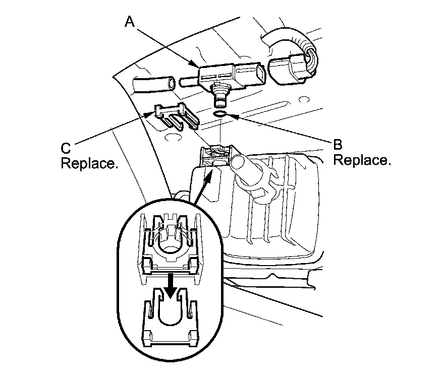 Install the parts in the reverse order of removal with a new O-ring (B) and a new retainer (C).