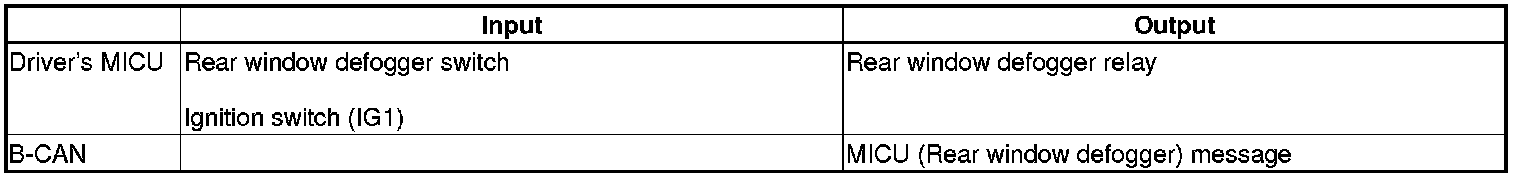 The driver's MICU control of the rear window defogger timer is based on the ignition switch and rear window defogger switch inputs.