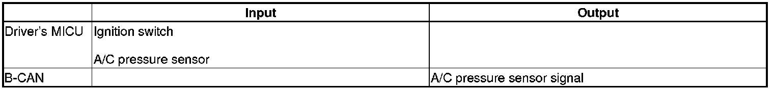 The driver's MICU sends A/C pressure sensor signal information when the ignition switch is in the IG1 position.