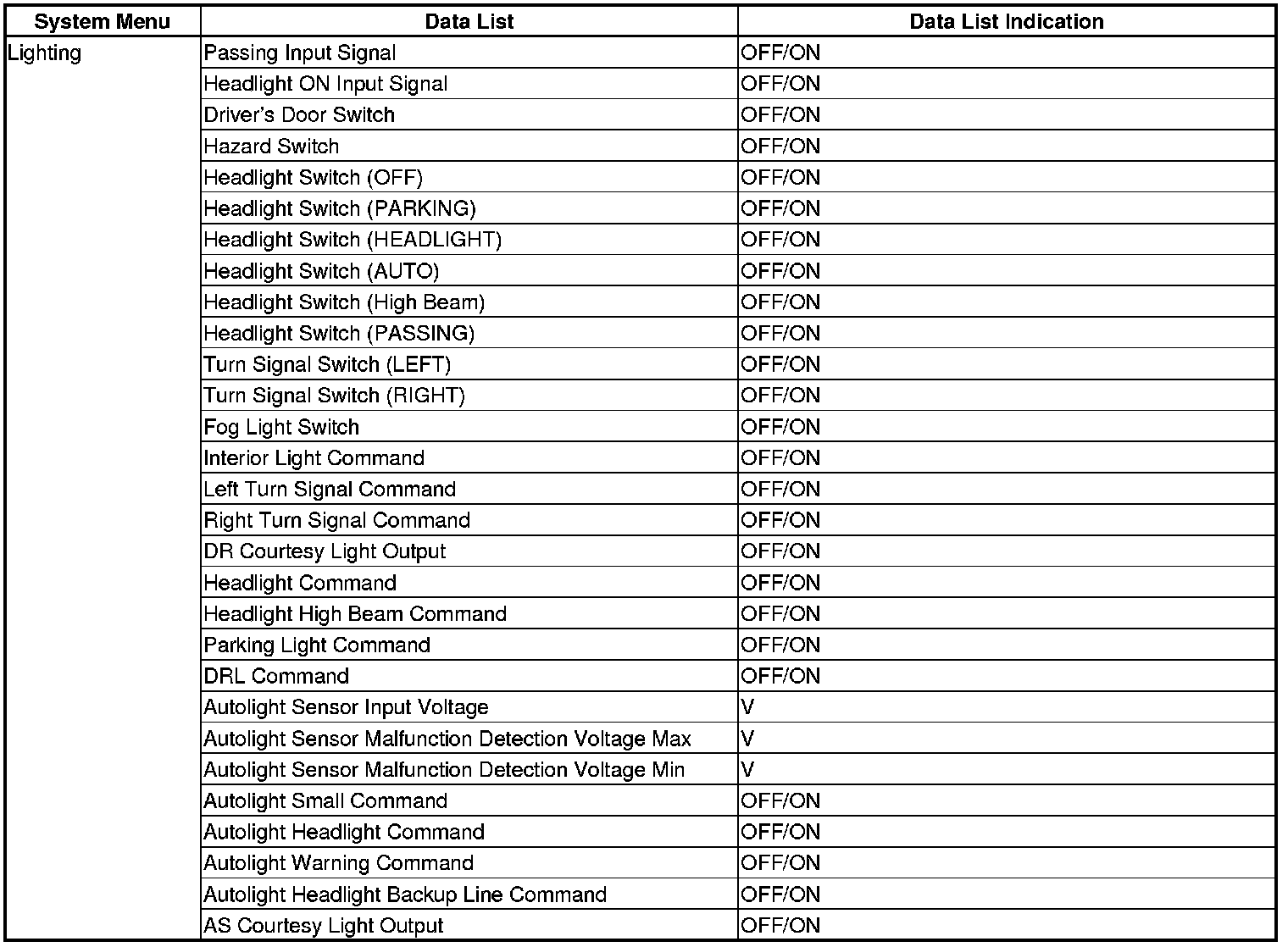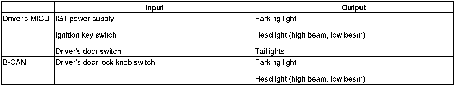 The driver's MICU control of the headlights as daytime running lights is based on inputs from each switch.