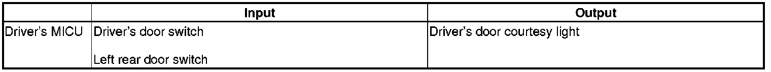 The driver's MICU control of the driver's and left rear door courtesy lights is based on inputs from the driver's and left rear door switches.
