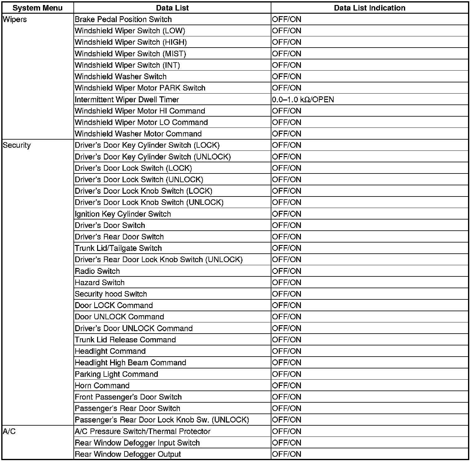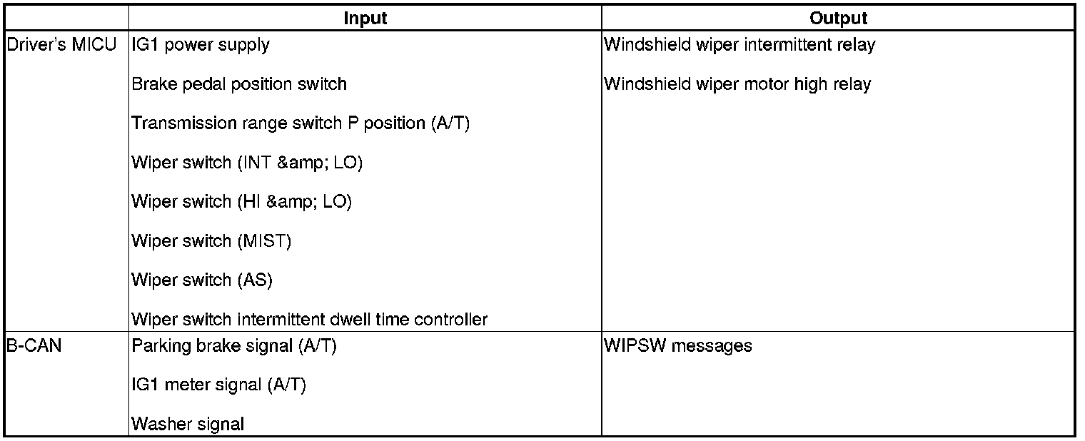 The driver's MICU control of the wiper is based on inputs from each switch.