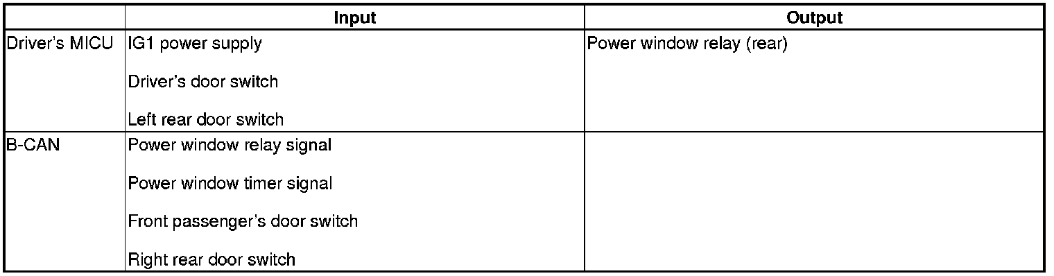 The driver's MICU control of the power windows is based on inputs from each switch.