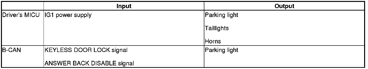 The driver's MICU control of the lighting system and horns is based on inputs from each switch and B-CAN data.