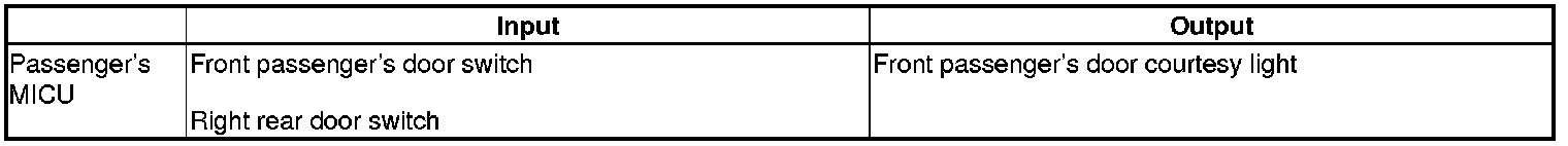 The passenger's MICU control of the front passenger door courtesy light is based on inputs from the front passenger door switch.