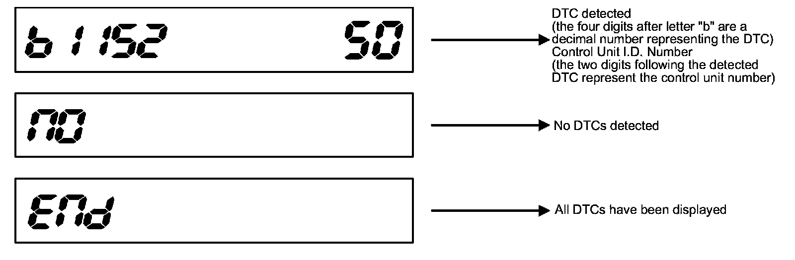 Enter B-CAN System Diagnosis Test Mode 1 Troubleshooting - B-CAN System Diagnosis Test Mode 1 And Test Mode 2 (Without The HDS). While in Test Mode 1, when communication between the MICU and gauge control module is normal, the DTCs that have been detected and stored individually by various B-CAN (Body-controller Area Network) unit, will be shown one by one on the odo/trip display. To scroll through the DTCs, press the SEL/RESET button.
