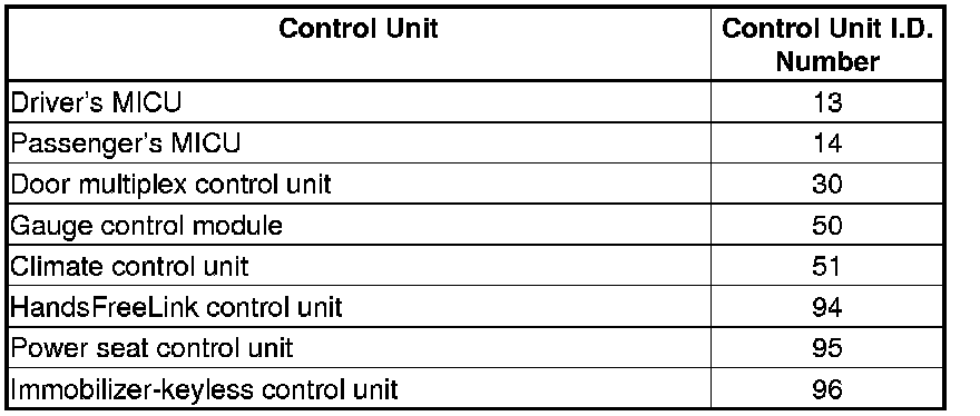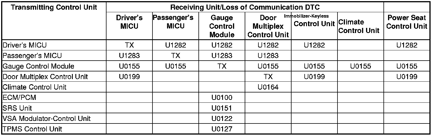 When an ECU on the CAN circuit is unable to communicate with other ECUs on the CAN circuit, the other control units will set loss of communication DTCs. Use this chart to find the control unit that is not communicating with the other control units on the CAN circuit.