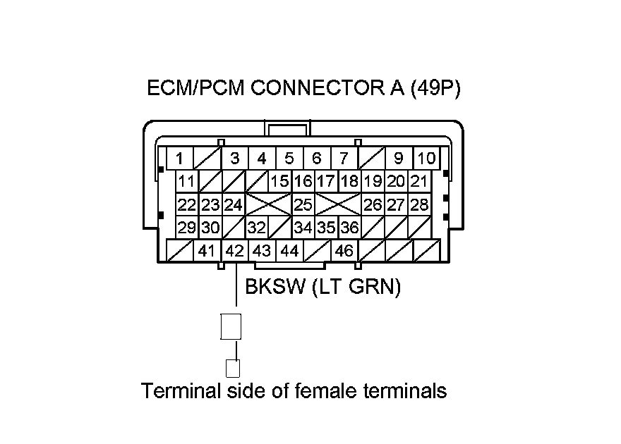 8. Check for continuity between ECM/PCM connector terminal A42 and body ground.
