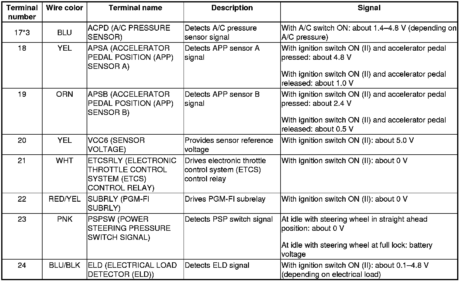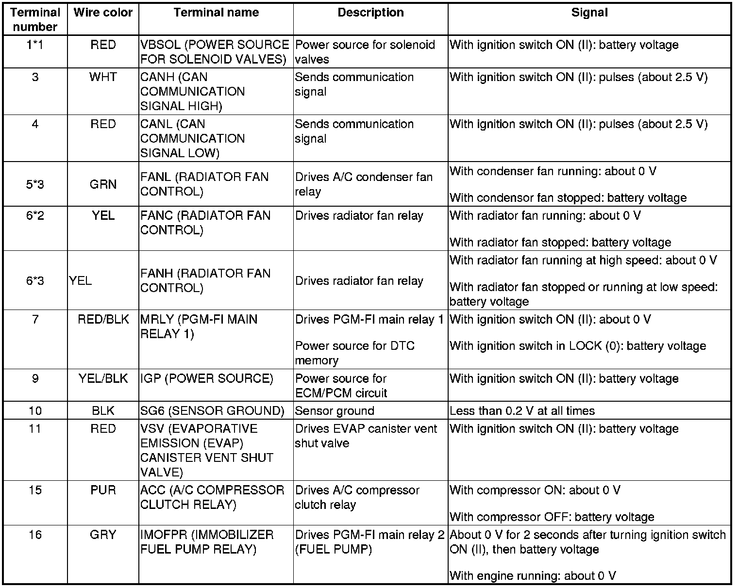 ECM/PCM Inputs and Outputs at ECM/PCM Connector A (square) (49P)