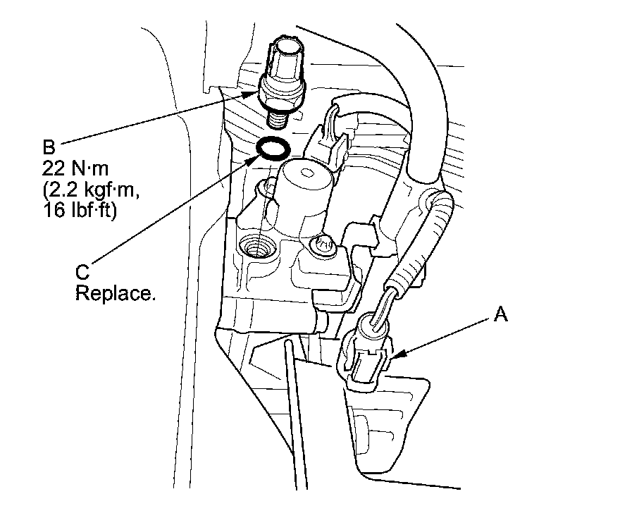 Install the parts in the reverse order of removal with a new O-ring (C).