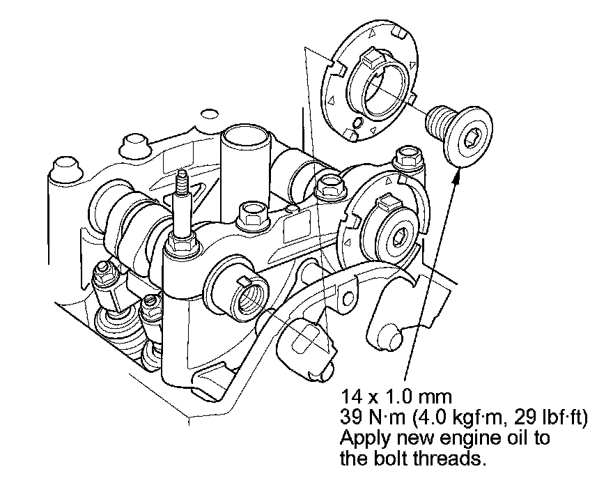 Hold the camshaft with an open-end wrench, then loosen the bolt.