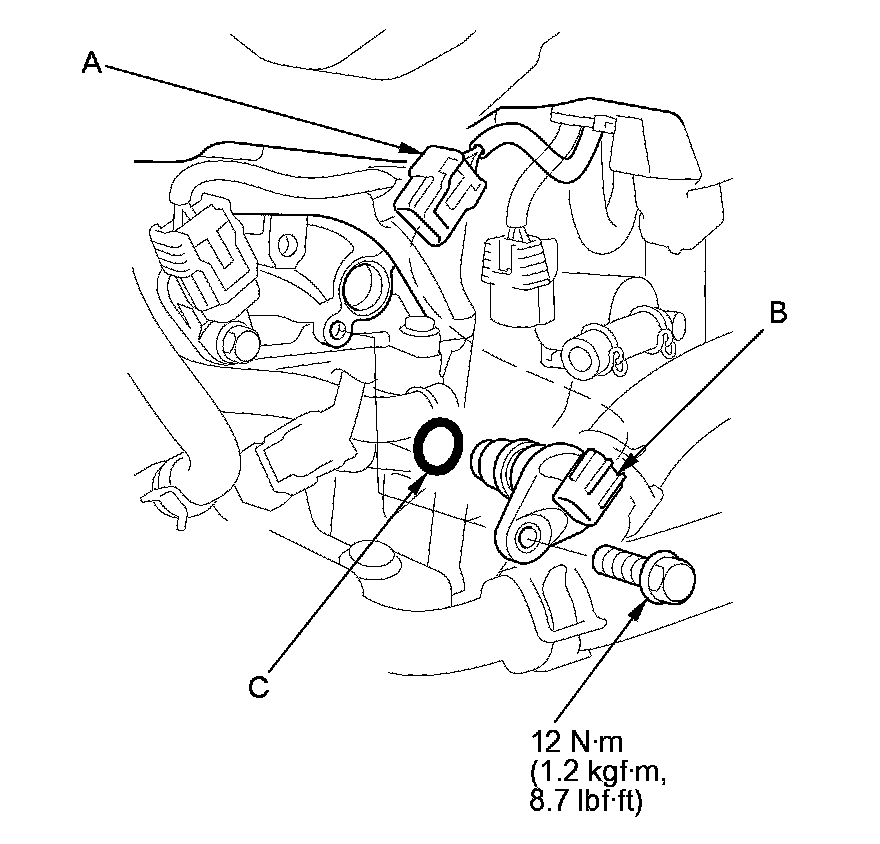 4. Install the parts in the reverse order of removal with a new O-ring (C).