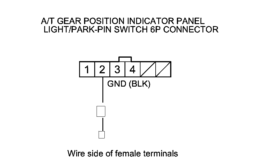 11. Check for continuity between A/T gear position indicator panel light/park-pin switch 6P connector terminal No. 1 and body ground.