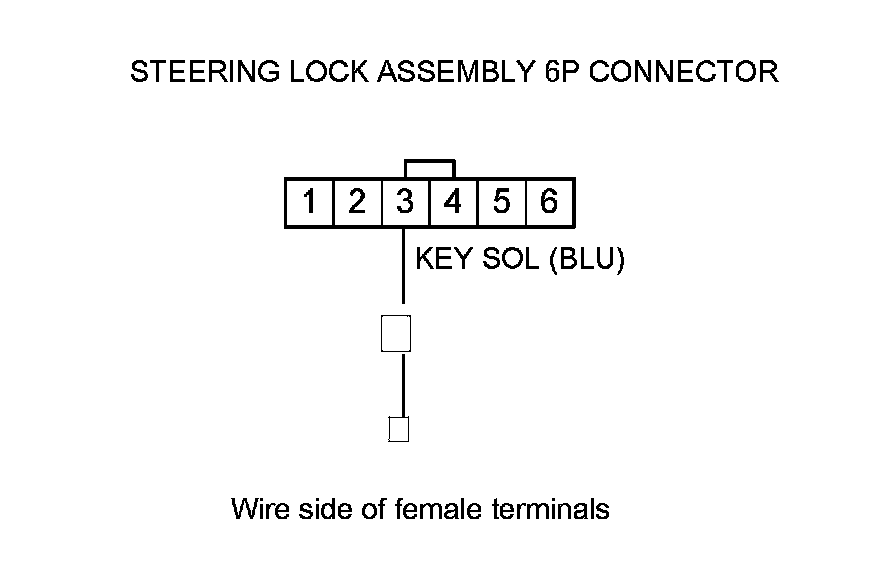 8. Check for continuity between steering lock assembly 6P connector terminal No. 3 and body ground.