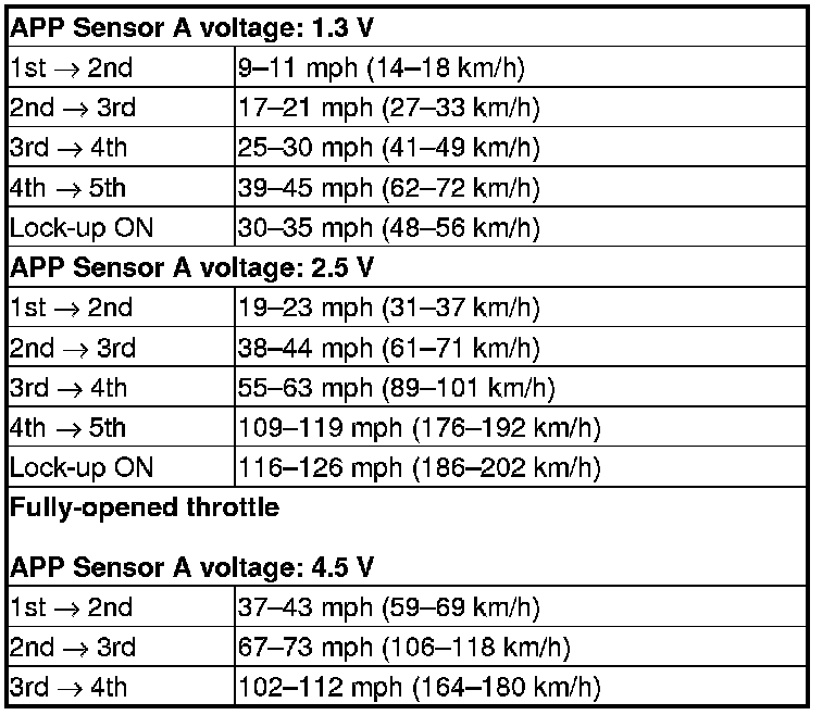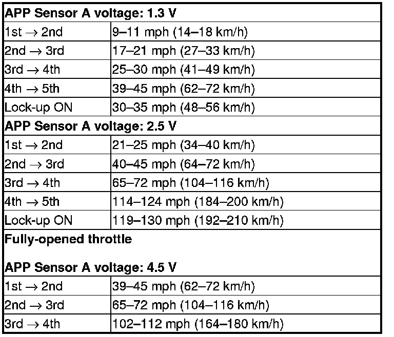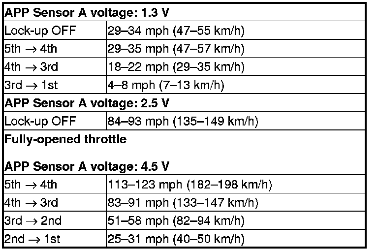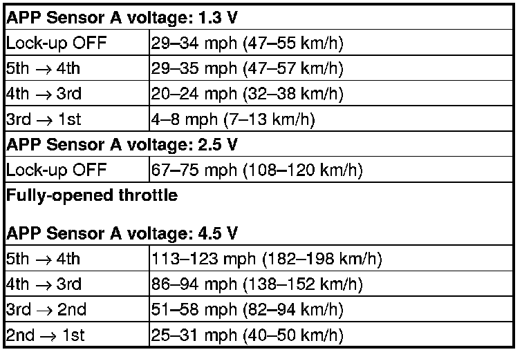 8. Monitor the HDS and accelerate quickly until the APP Sensor A reads 1.3 V. Maintain a steady throttle until the transmission shifts to 5th gear, then slow the vehicle and come to a stop.