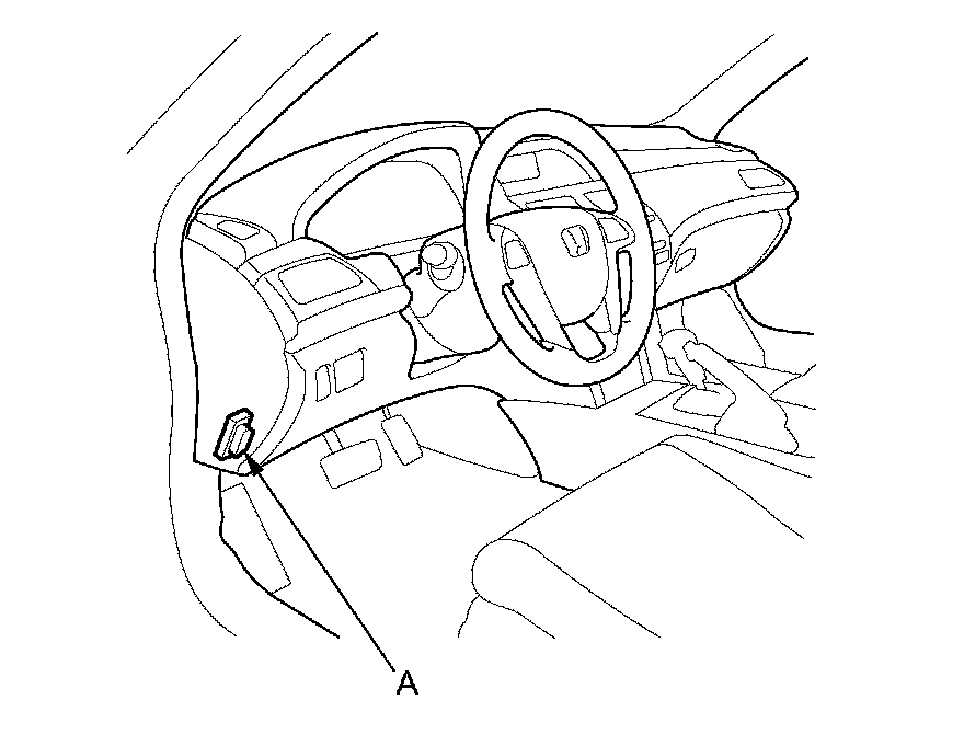 When the Honda Diagnostic System (HDS) is connected to the data link connector (DLC) (A) located under the driver's side of the dashboard, it will indicate the diagnostic trouble code (DTC) when the ignition switch is turned to ON (II) and the appropriate menu is selected.