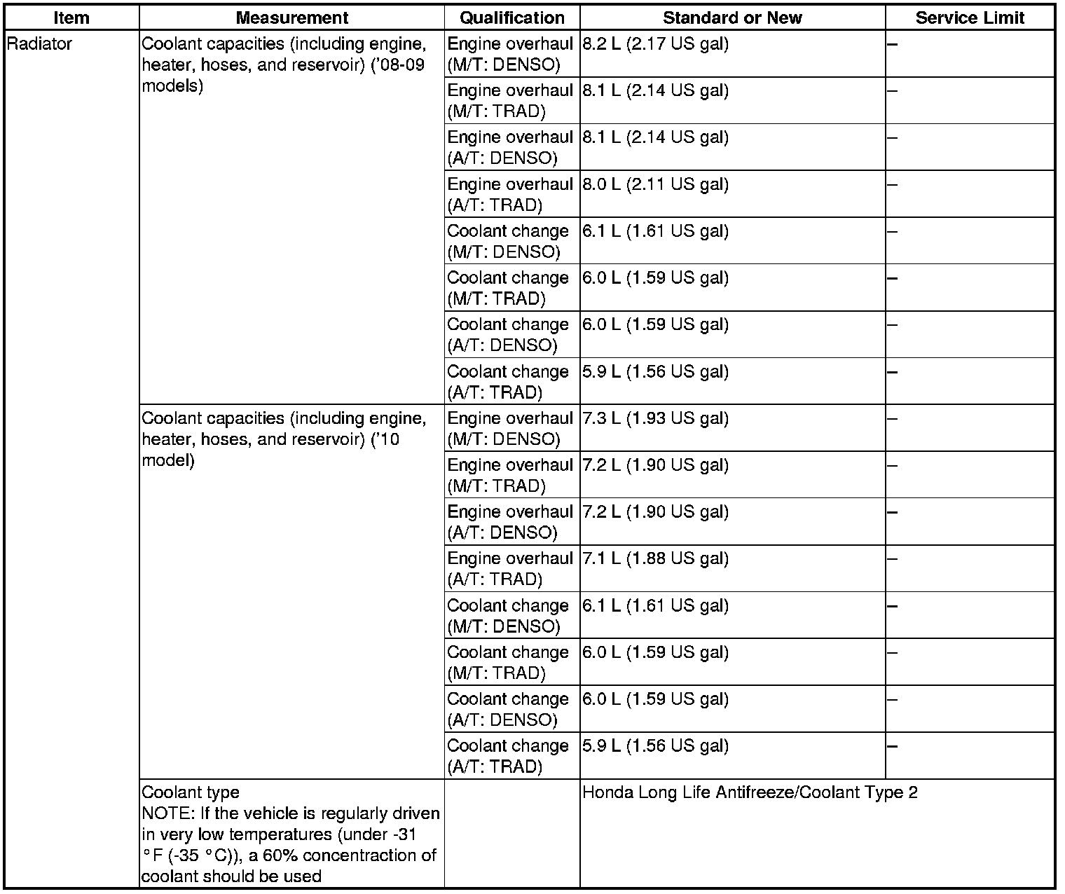 Radiator Specification(s)