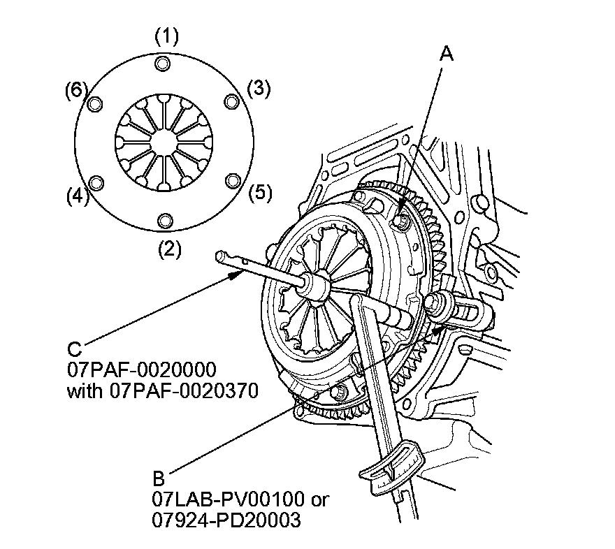 Tighten the bolts in several steps to prevent warping the diaphragm spring