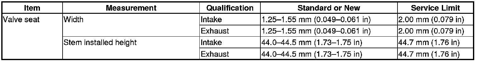 Valve Seat Specification(s)