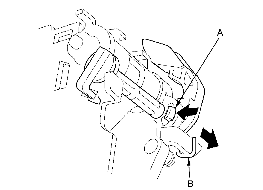 8. Release the lock (A) of the shift lock release, and remove the shift lock release and the release spring (B).