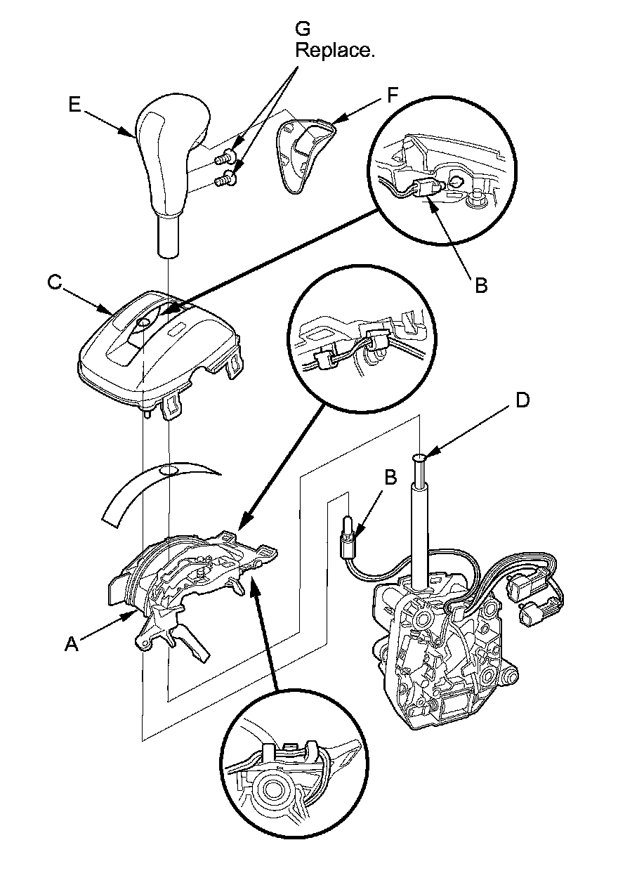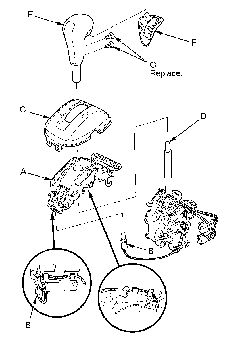 NOTE: The A/T gear position indicator panel light harness and the park pin switch are not available separately. Replace the A/T gear position indicator panel light harness and the park pin switch as a set.