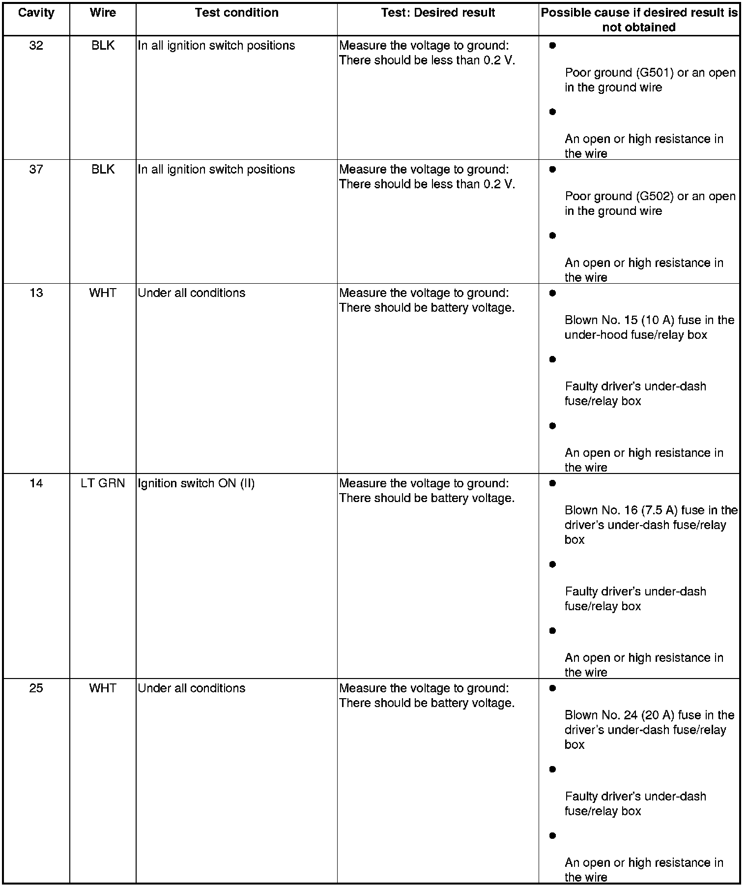NOTE: Before testing, troubleshoot the multiplex integrated control unit first, using B-CAN System Diagnosis Test Mode A Troubleshooting - B-CAN System Diagnosis Test Mode A.
