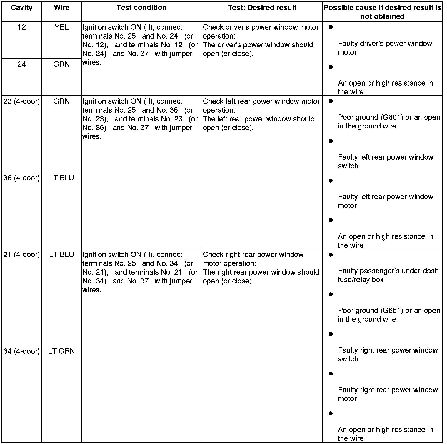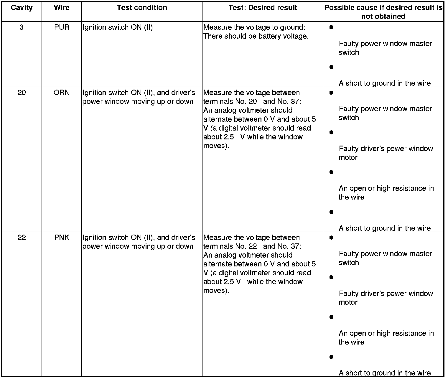 Power Window Master Switch Input Test
