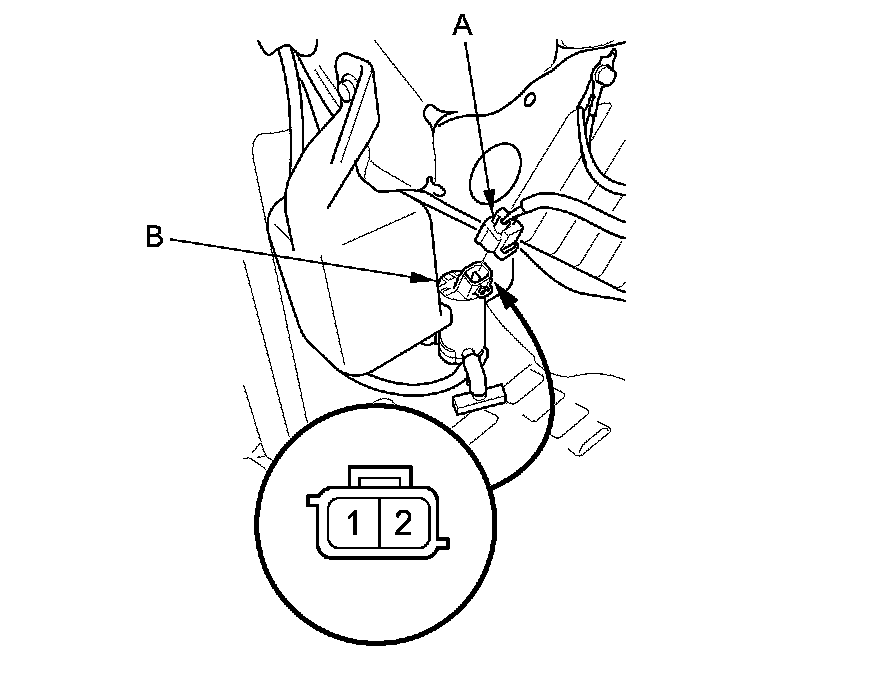 2. Disconnect the 2P connector (A) from the windshield washer motor (B).