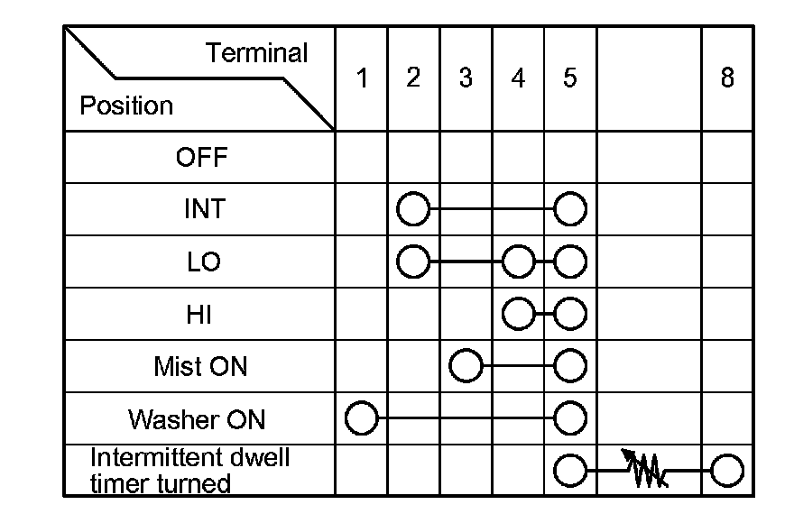 5. Check for continuity between the terminals in each switch position according to the table.