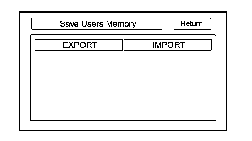 When replacing the navigation unit, this function allows the dealer to transfer the customer's personal data to the new navigation unit. The transferred information includes their Setup settings, and personal addresses. The dealer inserts a PC card to the navigation unit, and then selects the Save Users Memory function. The two functions in this diagnostic screen are EXPORT and IMPORT. EXPORT saves the customer's data to the PC card, and IMPORT moves the PC card files to the new navigation unit.