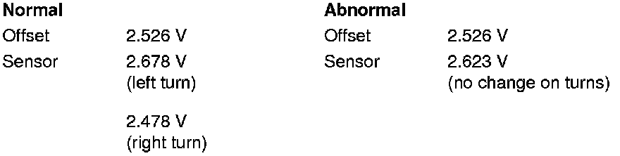 - A sensor output voltage LOWER than the Offset voltage indicates that the vehicle is turning to the right.