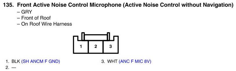 View 135 - Front Active Noise Control Microphone Connector View (Without Navigation)