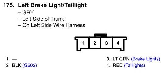 View 175 - Left Brake Light/Taillight Connector View