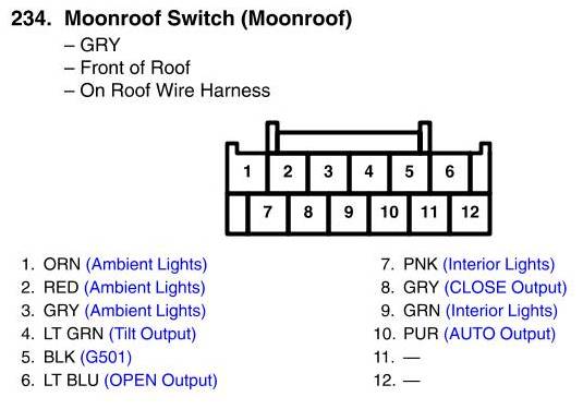 View 234 - Moonroof Switch Connector View