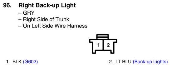 View 96 - Right Back-up Light Connector View