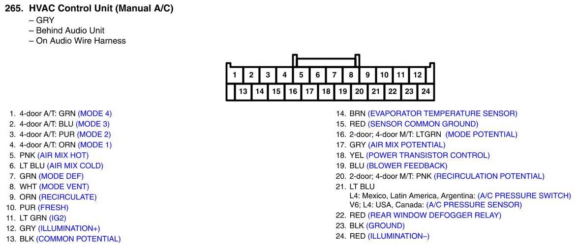 HVAC Control Unit Connector View (Manual A/C)