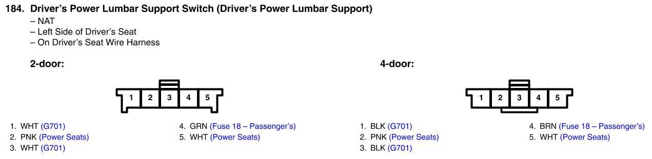 Driver's Power Lumbar Support Switch Connector View