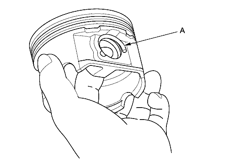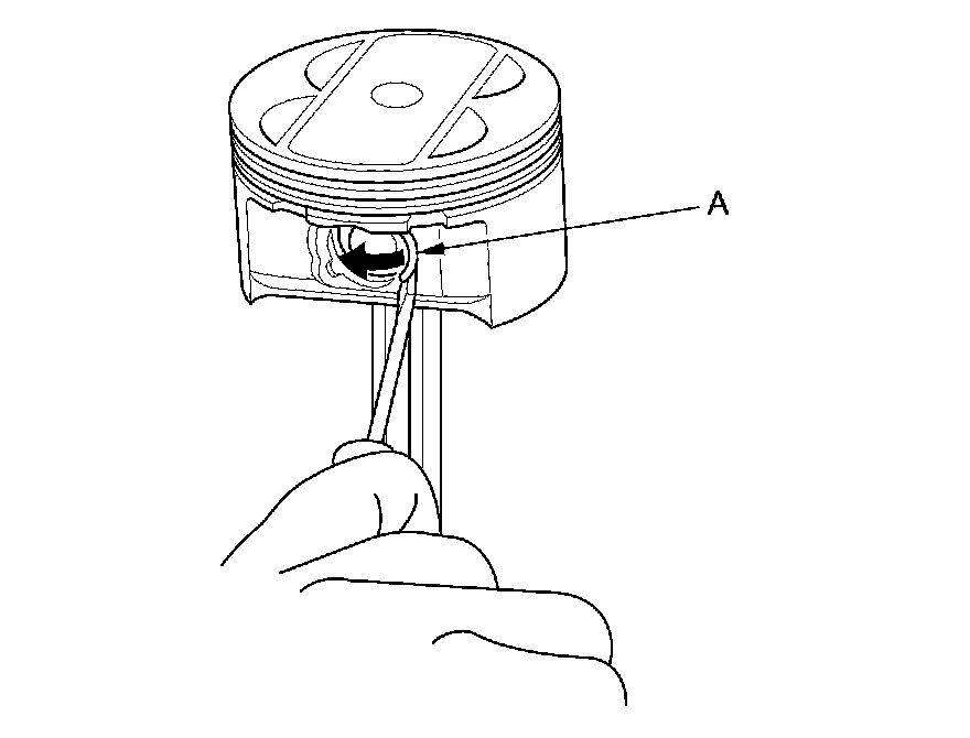 1. Install a piston pin snap ring (A) only on one side.