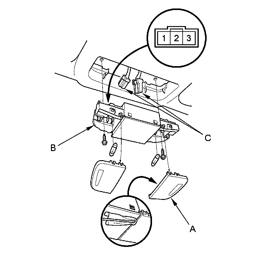 6. If the continuity is not as specified, check the bulb(s). If the bulb(s) are OK, replace the map light.