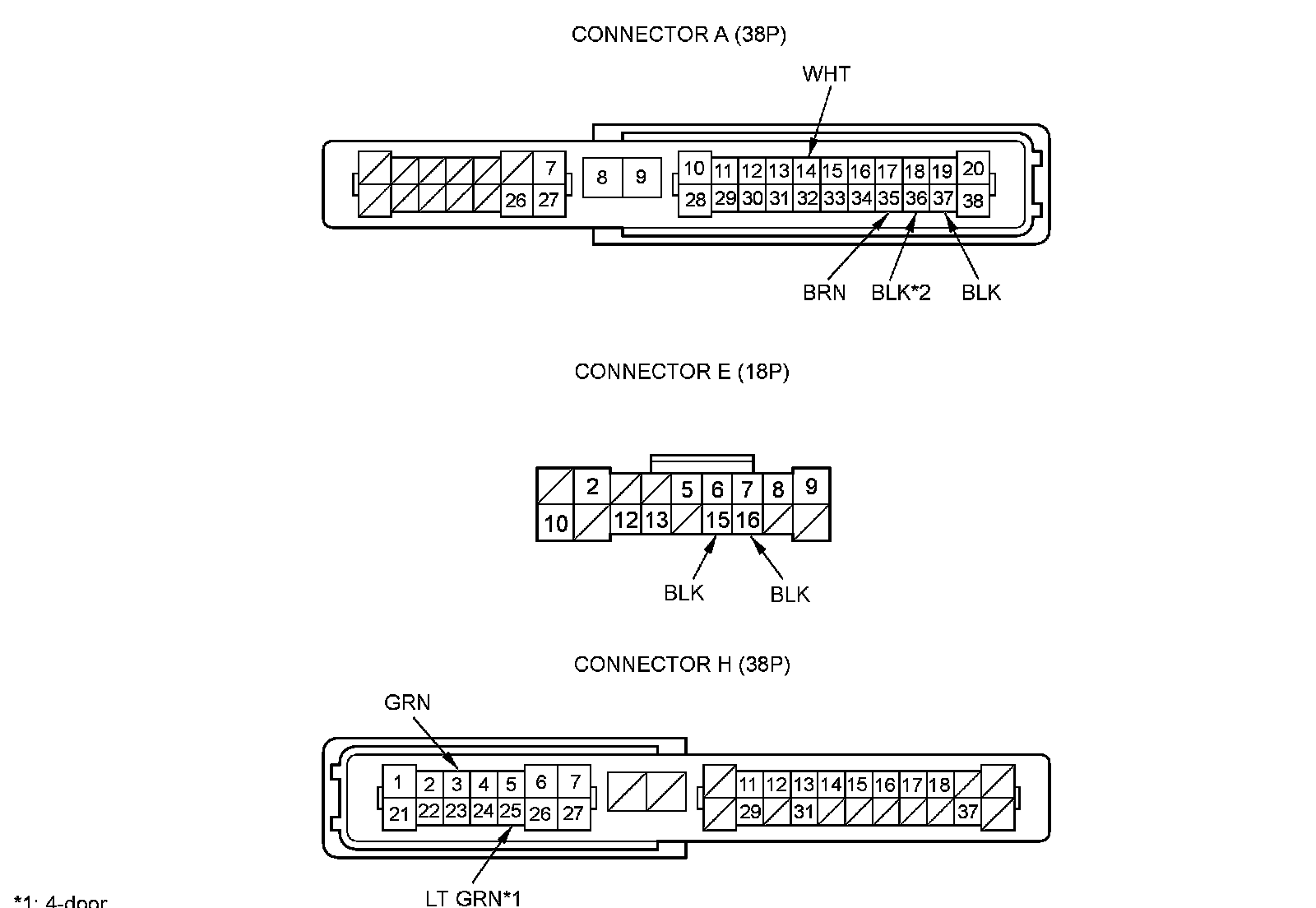 NOTE: All connector views are shown from wire side of female terminals.