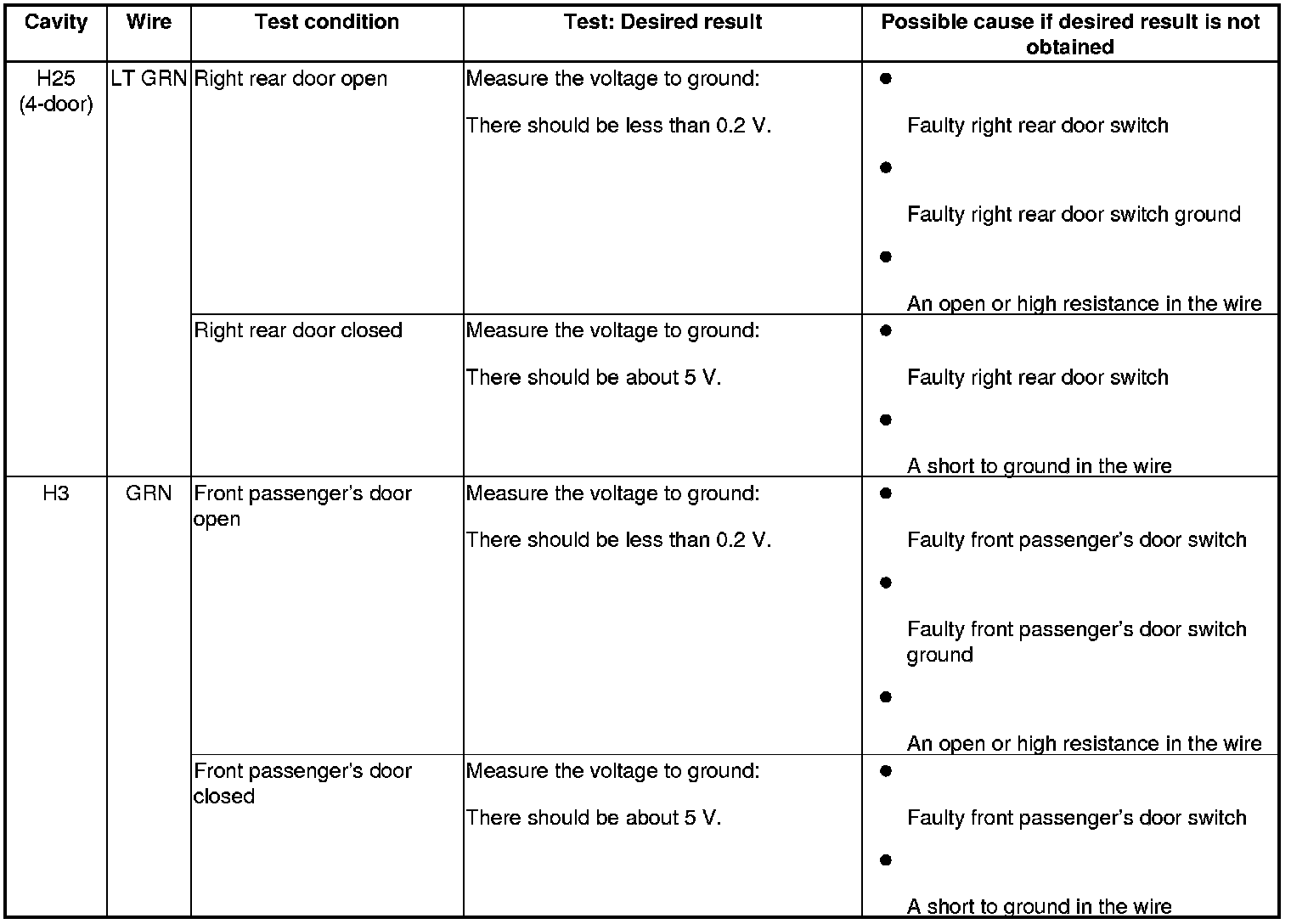 Entry Lights Control System (Drivers and Passengers MICU, and Door Multiplex Control Unit) Input Test