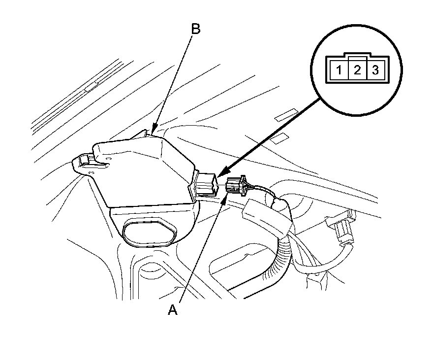 2. Disconnect the 3P connector (A) from the trunk lid latch assembly (B).