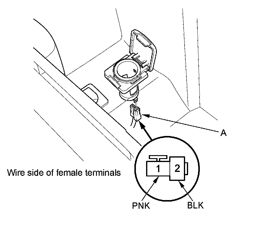 6. Measure the voltage between console accessory power socket 2P connector terminal No. 1 and body ground. There should be battery voltage.