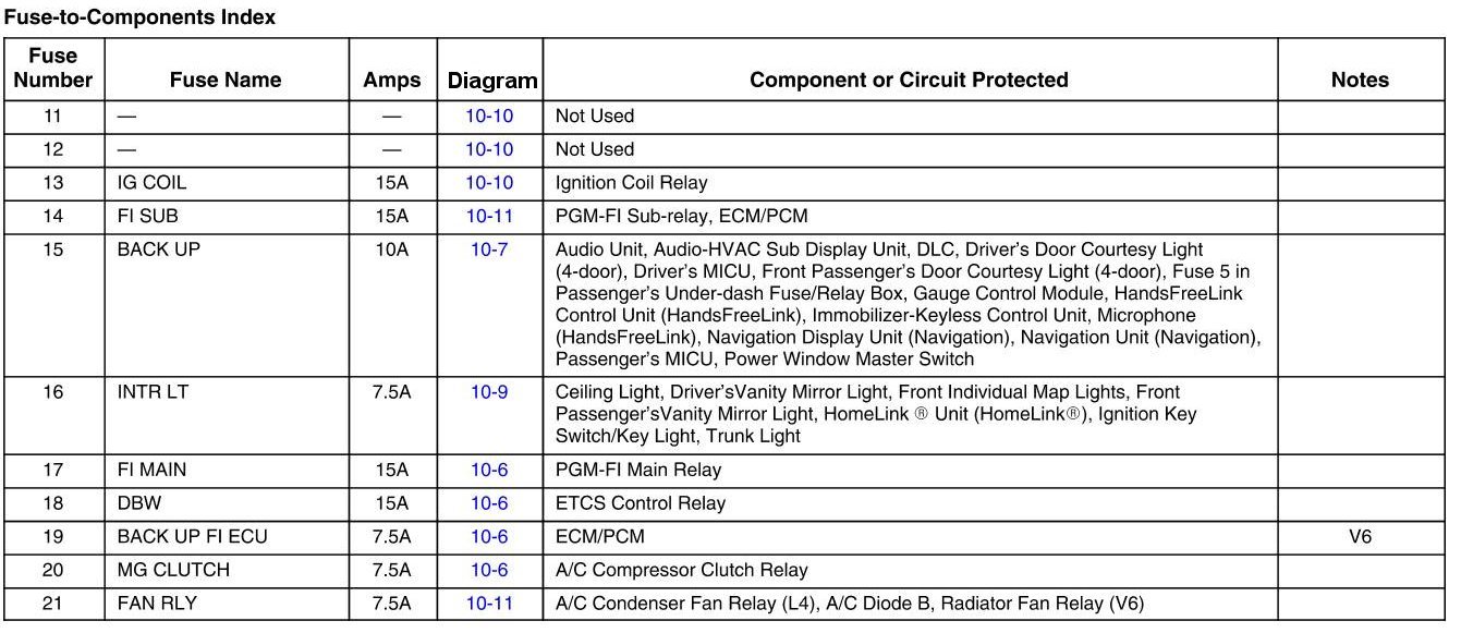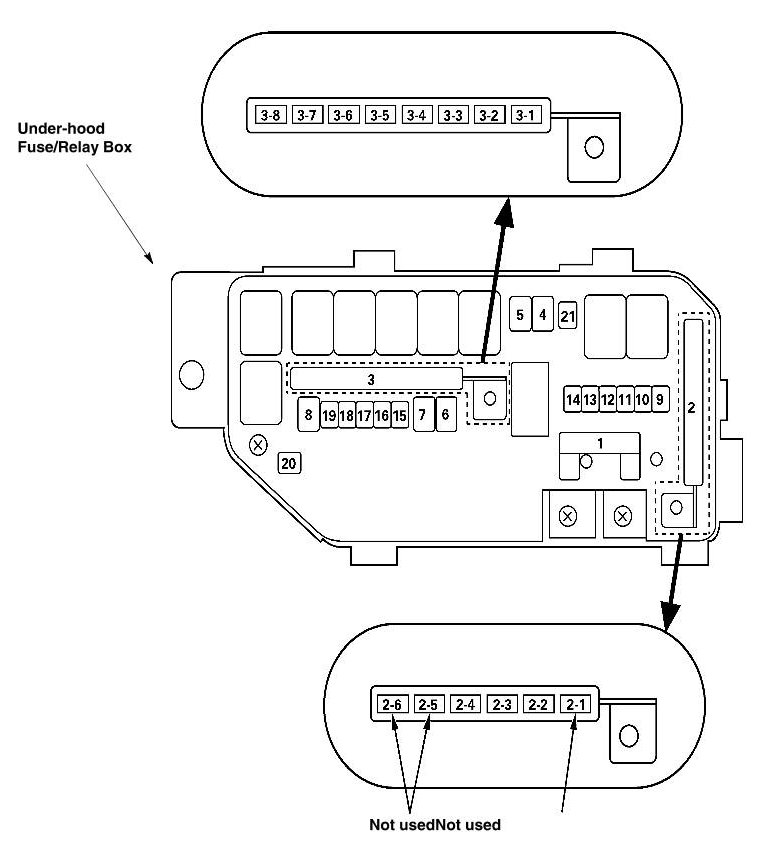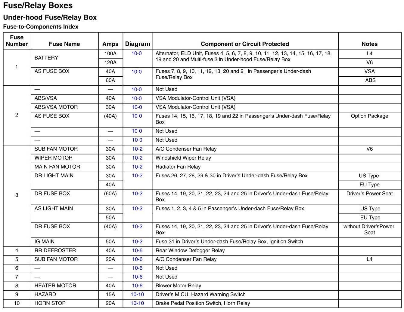 Under-Hood Fuse/Relay Box - Fuse-to-Components Index