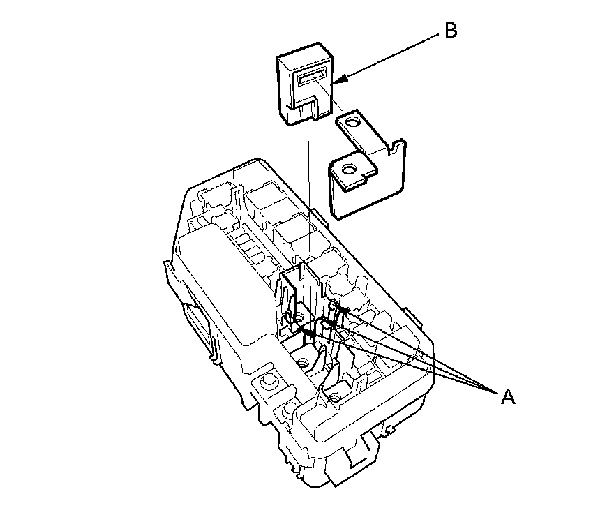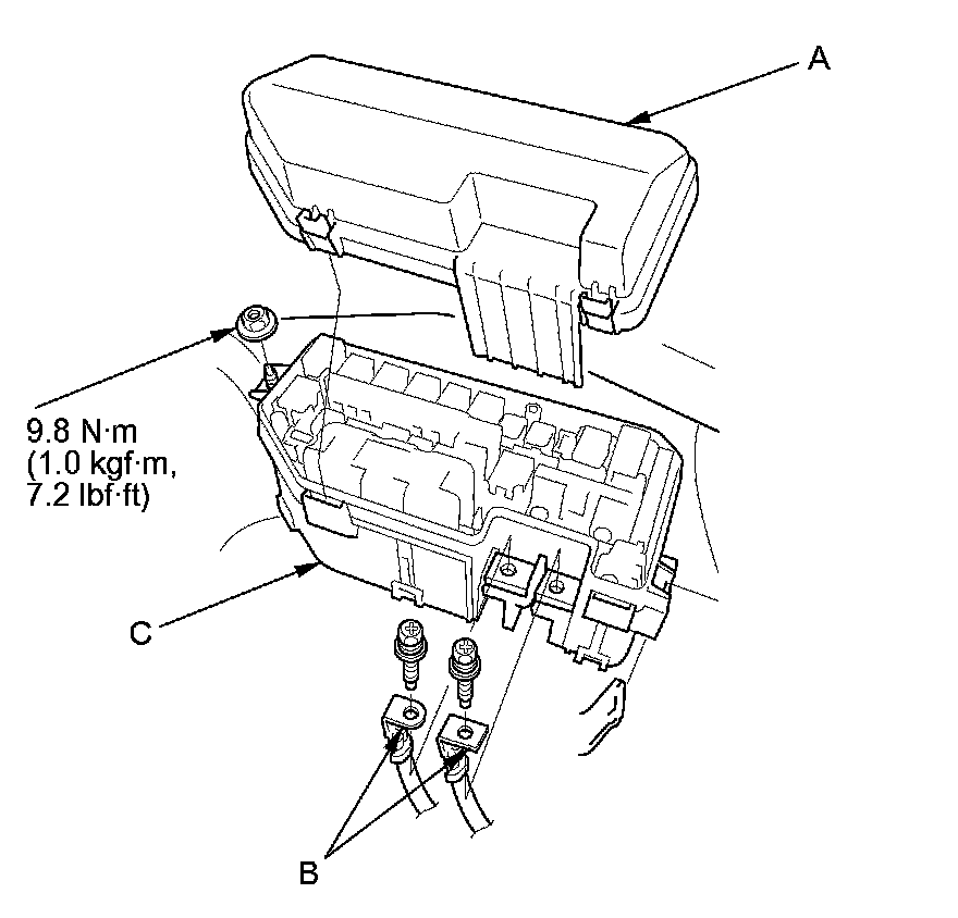 3. Remove the under-hood fuse/relay box (C) from the bracket.