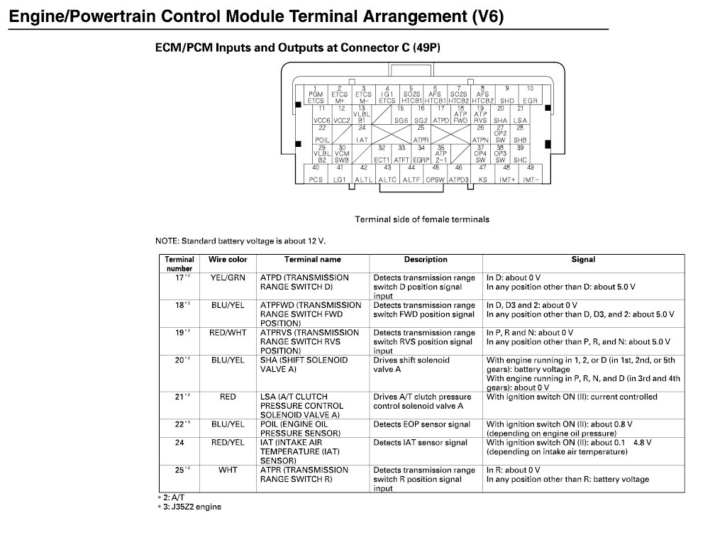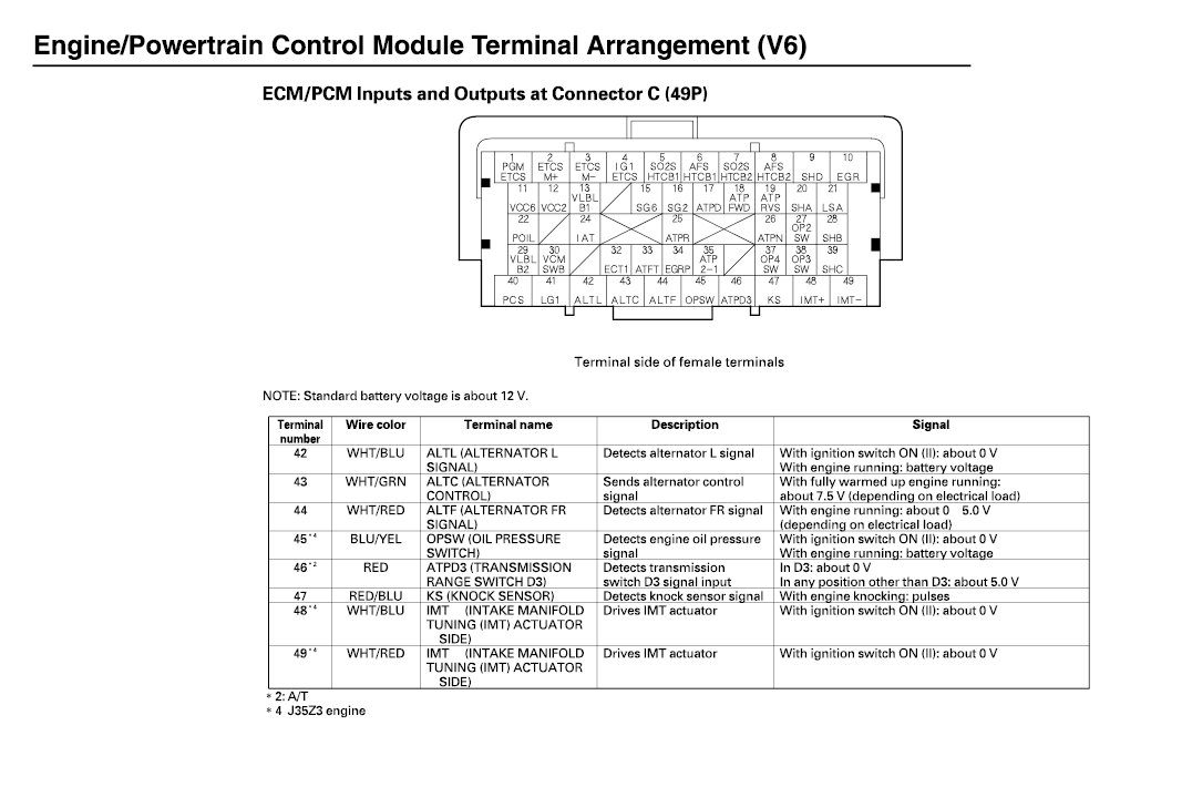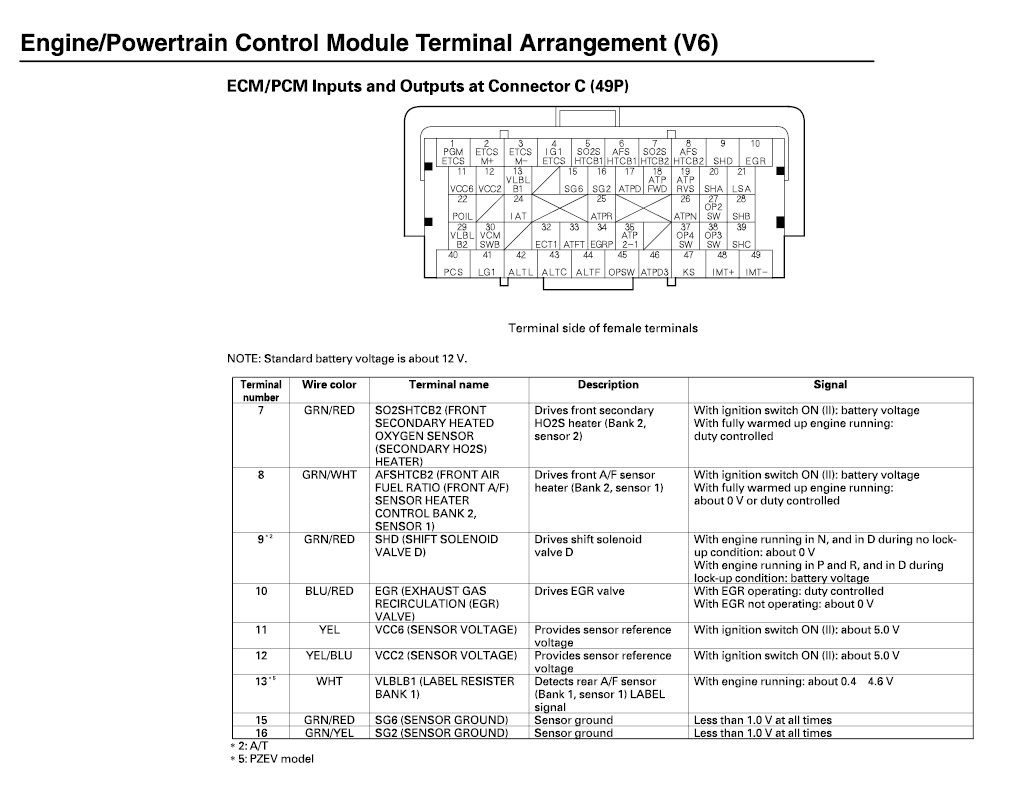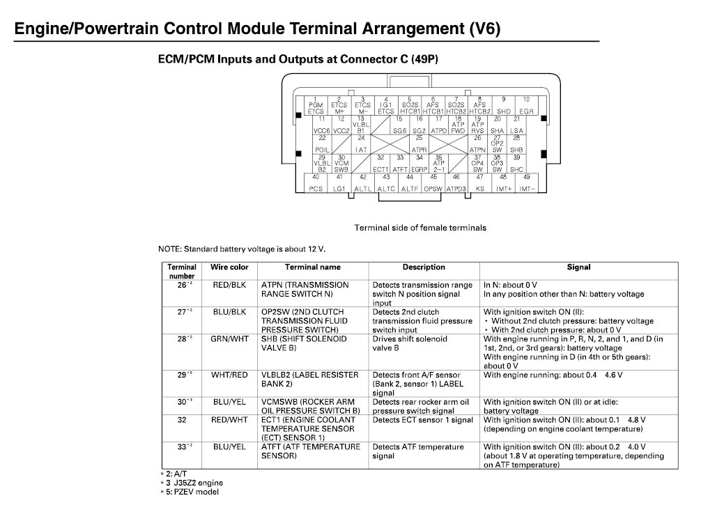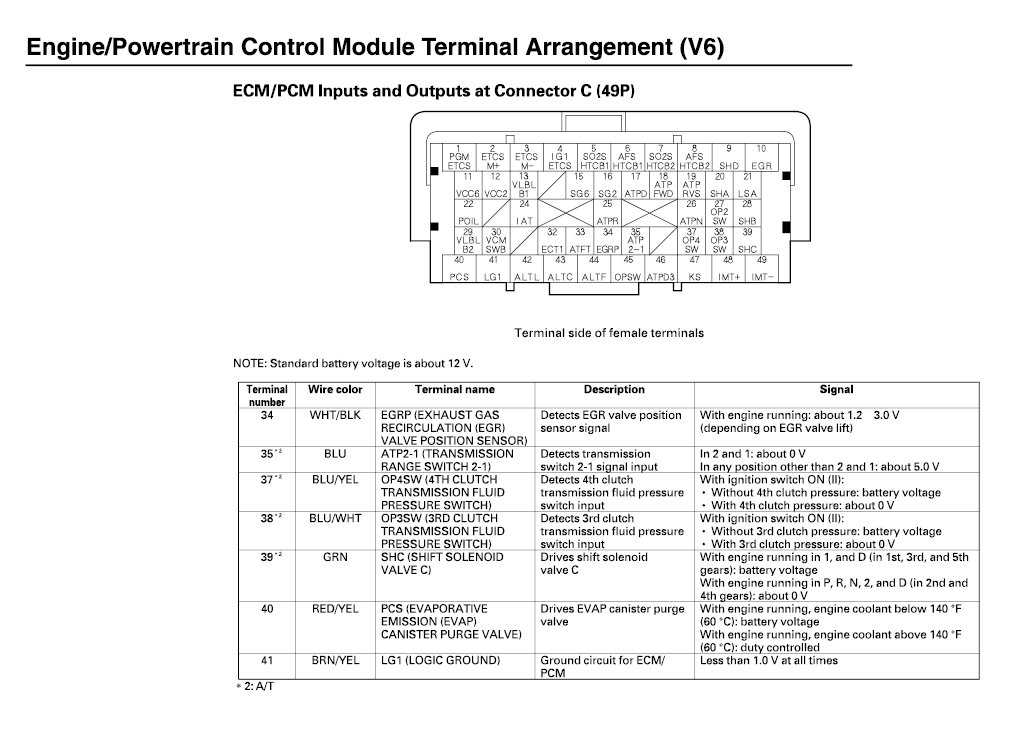 ECM/PCM Inputs And Outputs At Connector C