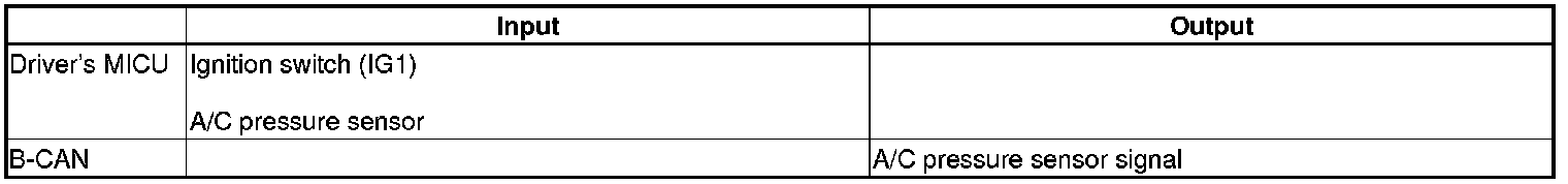 The driver's MICU sends A/C pressure switch signal information hen the ignition switch is in the IG1 position.