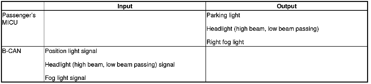 The passenger's MICU control of the front passenger's side headlight, and parking lights is based on inputs from the driver's MICU.