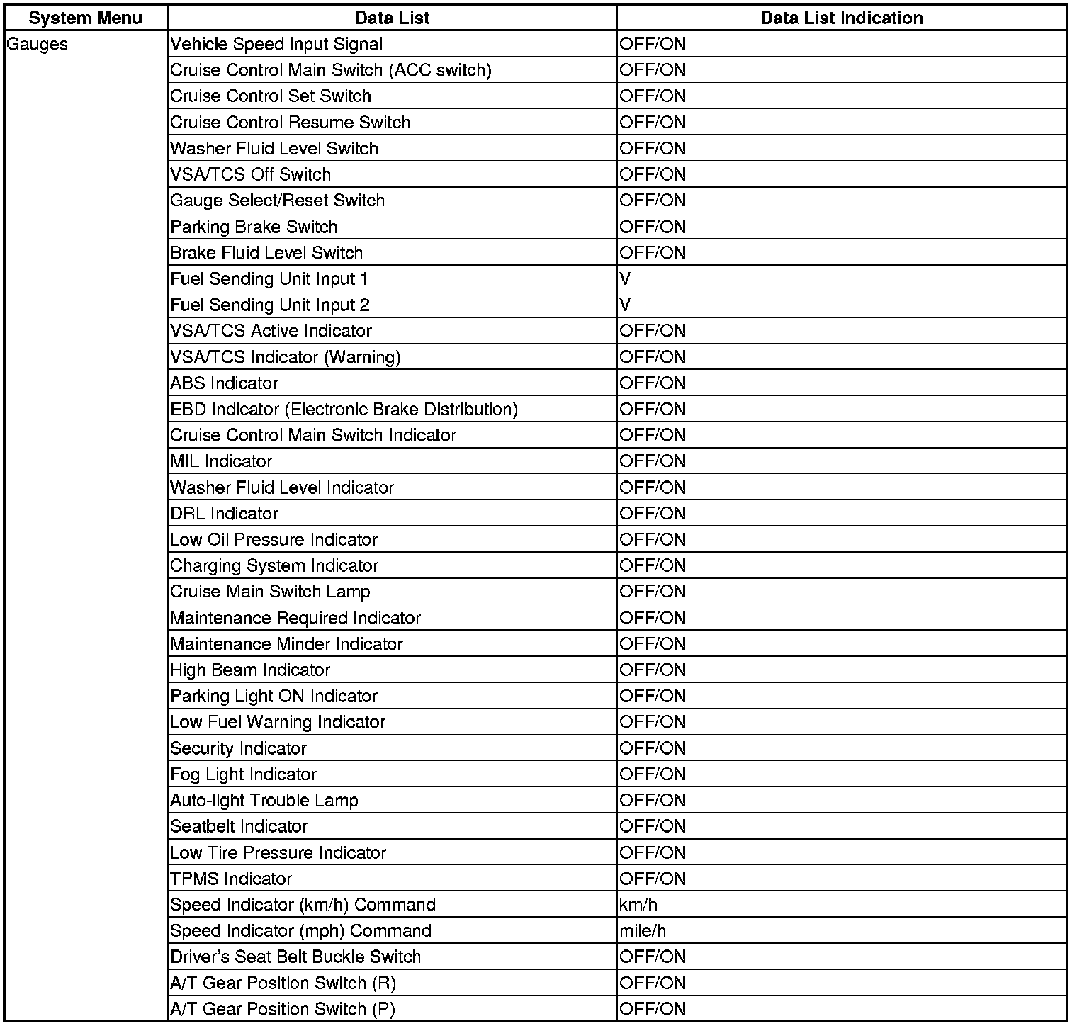 The ECUs on the CAN circuit send messages to each other. If there are any communication malfunctions on the network, the LCD display on the gauge control module can indicate the error messages by entering the gauge control module self-diagnostic function Initial Inspection and Diagnostic Overview.