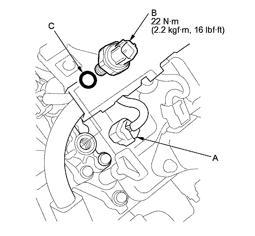 4. Install the parts in the reverse order of removal with a new O-ring (C).